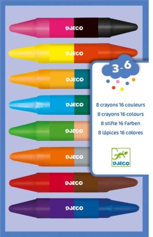 • 8 Crayons de cire double côté pour 16 couleurs !