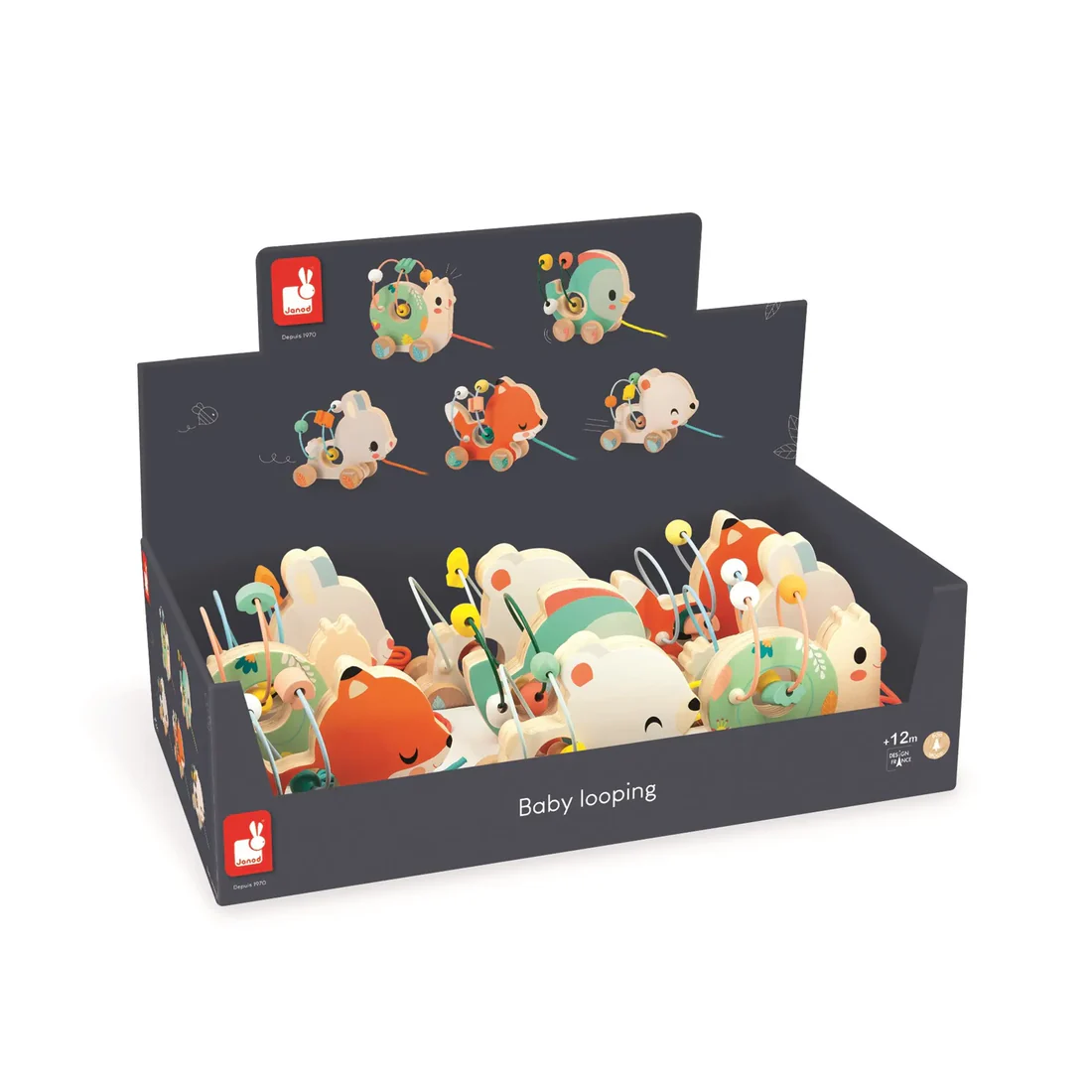 Ca roule pour nous ! Quel que soit votre choix parmi les 5 modèles disponibles (ourson, escargot, renard, lapin, oiseau), chaque adorable mini looping à promener fera la joie de votre enfant. Chaque animal est équipé d’un looping en métal avec 4 perles de différentes couleurs dont une associée à l’animal. Une ficelle permet de promener son animal partout, idéal pour développer la motricité fine et global.
