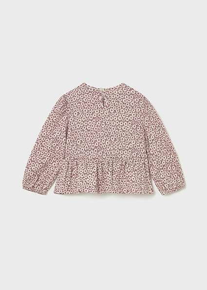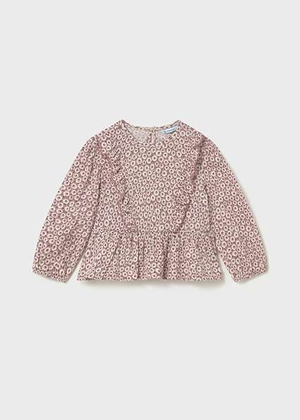 Chemisier à manches longues pour bébé. Petite ouverture dans le dos avec fermeture par bouton pour faciliter le passage du vêtement. Tissu de bambula très fluide pour les tenues les plus fraîches. Modèle bouclé avec volants. Design imprimé.
