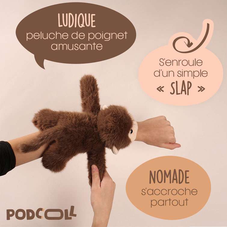 L’accessoire complice qui ne vous quitte plus ! Craquez pour la tendresse absolue de ce bracelet slap Singe. Plus qu’une simple peluche de poignet, ce petit compagnon s’enroule d’un geste tendre autour du poignet grâce à son système « slap » ludique. Parfait pour apporter une touche de douceur au quotidien des petits comme des grands.