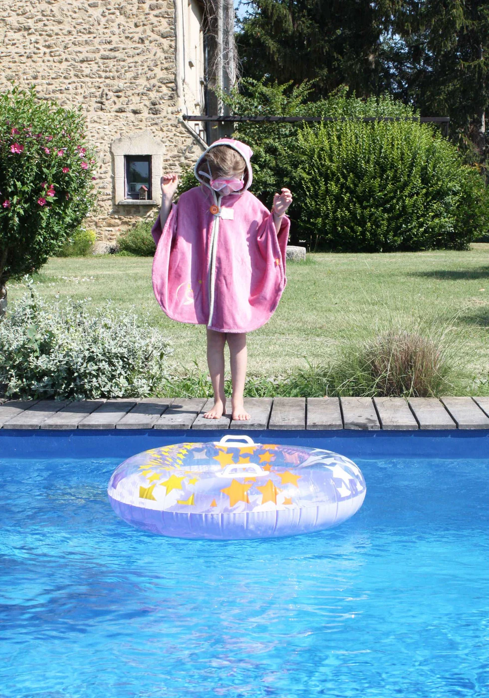 Enveloppante grâce à sa belle ampleur, elle sèchera rapidement et gardera les enfants au chaud. Avec son beau bouton gomme, notre cape de bain est dotée d’une fermeture facile qui favorise l’autonomie des enfants.
