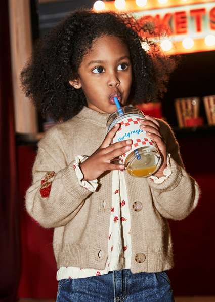 Contient du polyester recyclé. Cardigan à manches longues pour fille. Col rond. Fermeture avec des boutons sur le devant. Tissu tricot confortable. Tissu tricoté, doux et agréable au toucher.