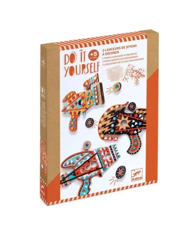 Découvrez le coffret Lanceurs de jetons à décorer Kosmik de la collection Do It Yourself de Djeco, un coffret créatif pour les enfants à partir de 5 ans permettant de confectionner 3 lanceurs de jetons à l’aide de stickers mosaïques.