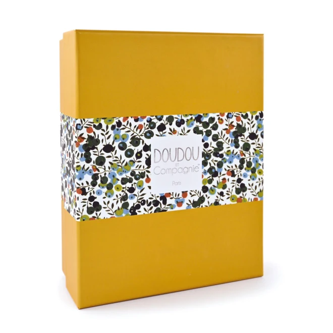 • Doudou présenté dans une boîte dans laquelle on peut y insérer des souvenirs de bébé ! (photos, souvenirs de la naissance de bébé)