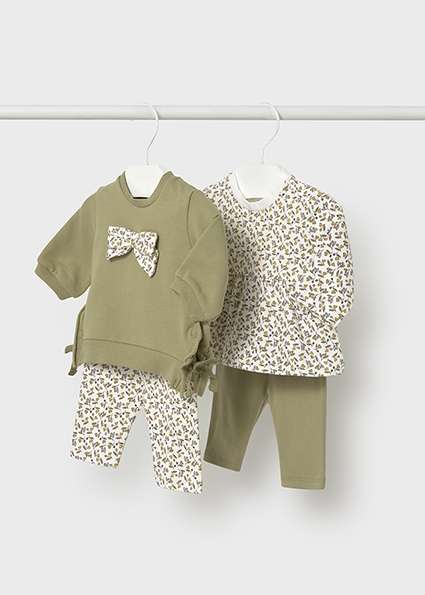 Ensemble de quatre pièces pour nouveau-né composé de deux ensembles de sweatshirt et de leggings assortis.