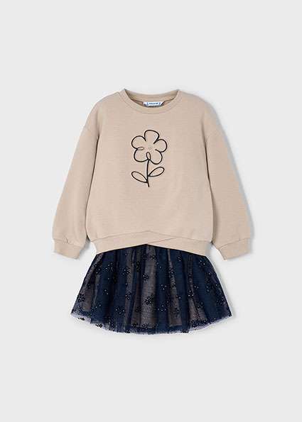 Ensemble jupe en tulle et sweat fleur fille – marine