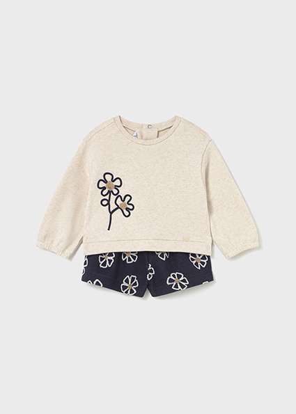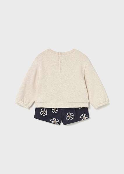 Ensemble de deux pièces pour bébé composé d’un pull avec un short assorti.