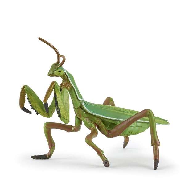 Figurine en plastique peinte à la main représentant fidèlement une mante religieuse. La réputation de la mante religieuse n’est plus à faire. On pourrait parler d’un amour dévorant pour caractériser son accouplement. En effet, la femelle peut alors manger le mâle. De couleur verte ou beige, elle est reconnaissable à ses étranges pattes repliées munies d’épines. Ses pattes antérieures lui servent à capturer les proies dont elle se nourrit.