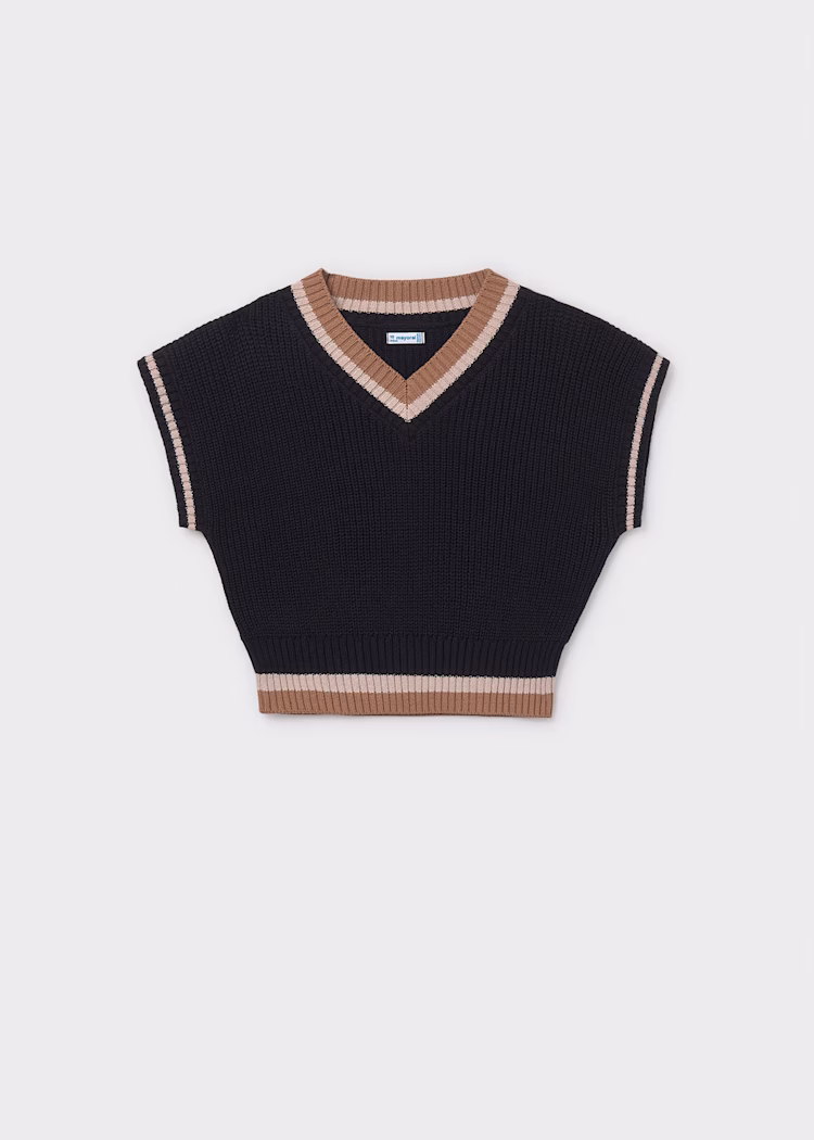 Gilet contrasté fille – sans manche