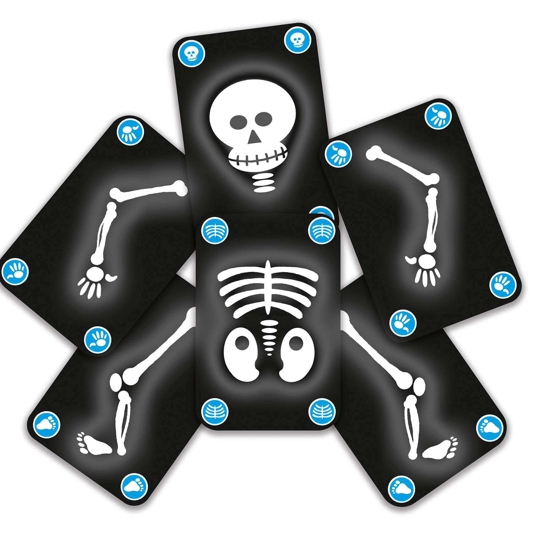 Le but du jeu est d’être le premier à avoir reconstitué 2 squelettes non cassés ou 1 seul squelette cassé. Le squelette se compose de deux jambes, deux bras, d’un crâne et des côtes. Avec ces cartes phosphorescentes, il est possible de jouer dans le noir pour une expérience encore plus drôle !