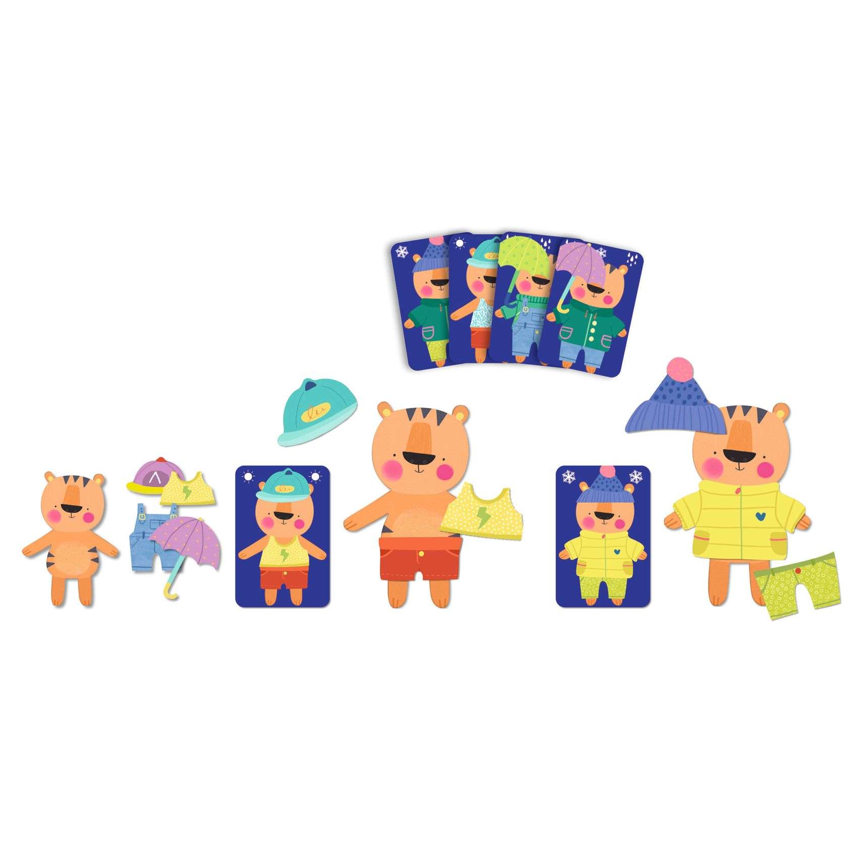 Les joueurs ferment les yeux pendant qu’un joueur, ou un adulte pour les plus jeunes, tire une carte et décrit la carte et les habits du tigre qui y figure. Les joueurs doivent ensuite prendre les vêtements décrits et habiller leur animal.