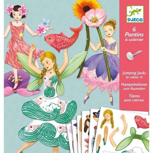 Un coffret pour se créer des pantins articulés sur le thème des fées. Contenu : – 6 feuilles illustrées – 50 attaches parisiennes – 1 livret pas à pas Ce set permettra à l’enfant de créer, en suivant la notice, six pantins articulés qu’il pourra ensuite manipuler pour s’inventer de nombreuses histoires. Il pourra commencer par colorier les feuilles illustrées puis détacher les pièces pour reconstituer le personnage de fée. Il lui suffira alors de fixer les pièces avec des attaches parisiennes et de relier le tout par une tige pour animer le pantin