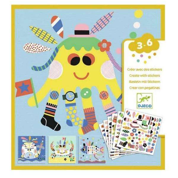 Développez l’imagination et la créativité de votre enfant avec cette pochette de stickers à coller sur le thème des animaux marins !