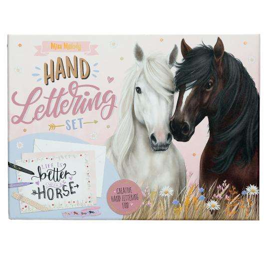 Le hand lettering est très tendance ! Cette boîte créative de Miss Melody contient tout ce dont on a besoin pour réaliser de magnifiques lettres et cartes : 10 feuilles de papier à lettres, 10 enveloppes, 5 cartes postales, 4 stylos (2 feutres à double pointe (rose et rose vif), 1 stylo noir Magic hand lettering, 1 stylo gel doré), 3 feuilles d’autocollants, 1 dévidoir avec 4 tapes, ainsi que 2 pochoirs. Également inclus : un petit livret qui contient de simples instructions et idées.