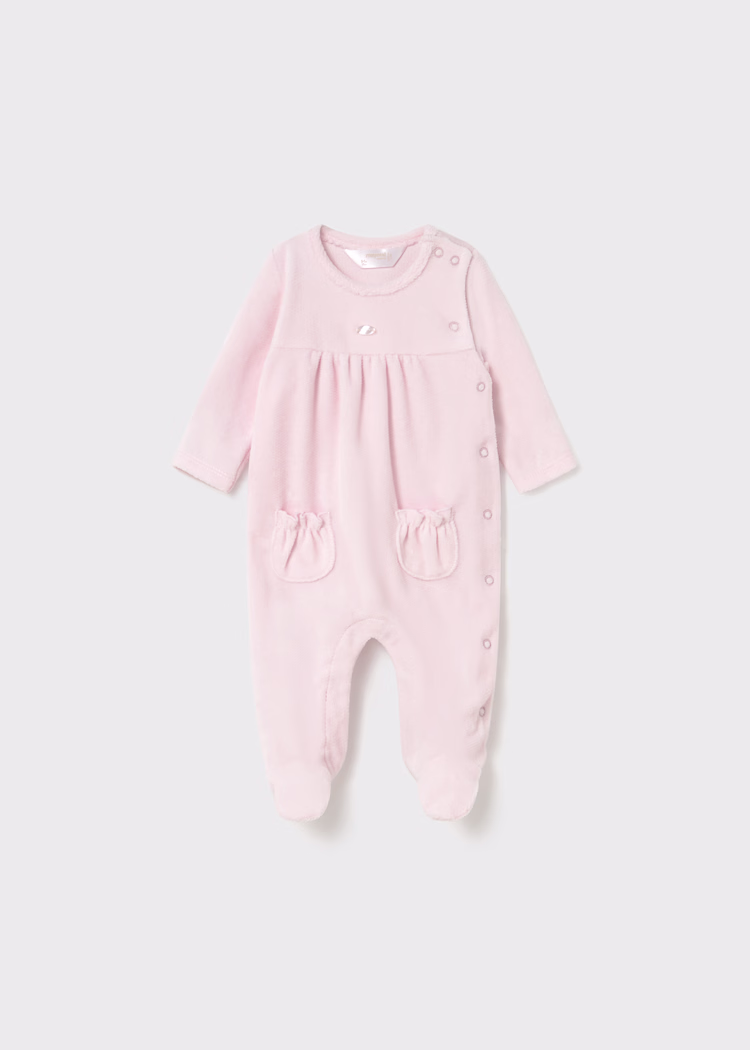 Lot 2 grenouillères en velours nouveau-né – à pois rose