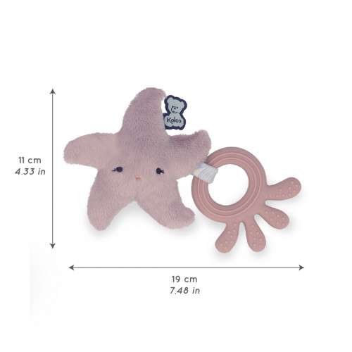Pour toujours plus d’apaisement et de réconfort lors des poussées dentaires, la peluche étoile de mer extra-douce pourra être câlinée et mise à la bouche encore et toujours ! Elle est bi-matières (micro-velours et fourrure synthétique), rembourrée avec du polyester recyclé, et mesure 11 cm de haut. Son ventre est habillé d’un imprimé « Danse des vagues » et d’une broderie poisson qui stimulera le toucher de bébé. Sous le signe de la relaxation, les profondeurs marines sont synonymes de bien-être et de calme. Vous pouvez laver l’anneau et sa peluche en machine à 30°, pour un entretien facile. Cet anneau de dentition étoile de mer est issu de notre collection petit calme, la gamme conçue pour rassurer et réconforter bébé et pour accompagner les parents soucieux du confort de leur tout-petit.