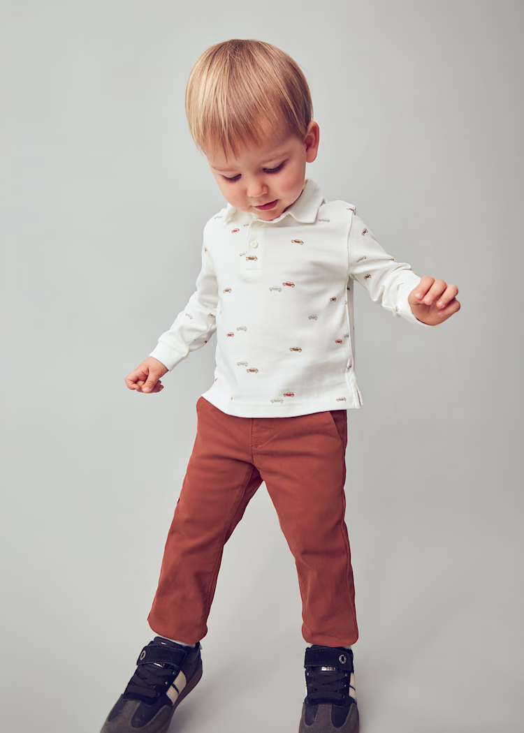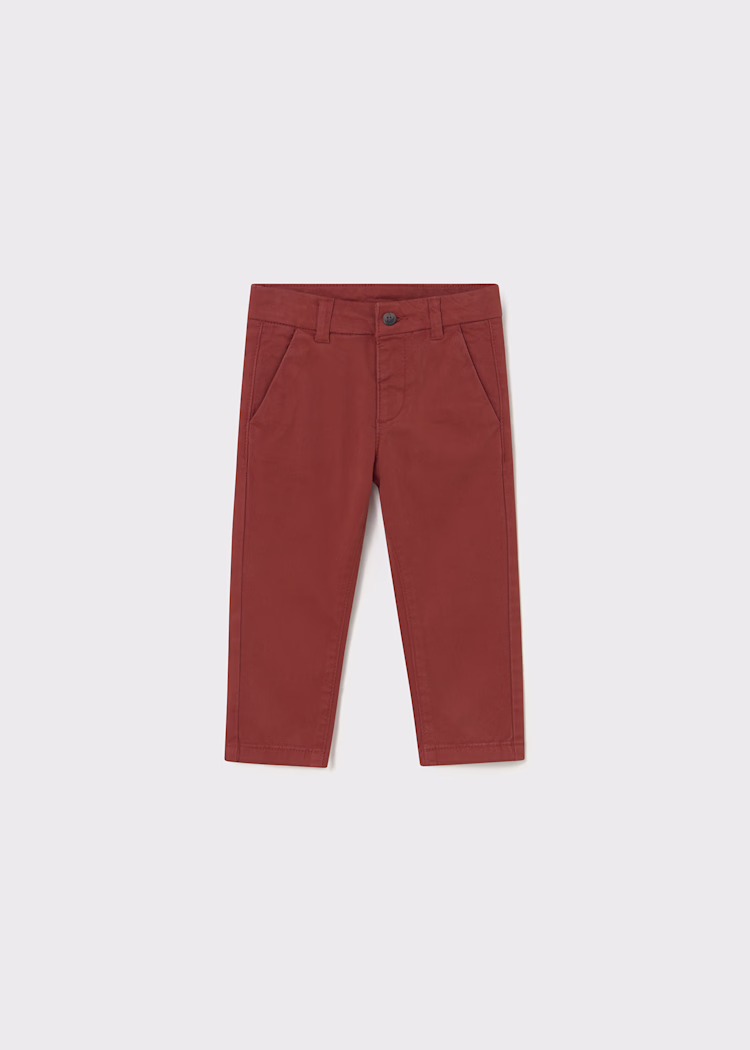 Pantalon de type chino, coupe ajustée à la jambe pour une silhouette qui ne predra pas en élégance. Fermeture avec un seul bouton. Fausse braguette. Elastique réglable à la taille Tissu confortable en serge de grande résistance. Design avec poches fonctionnelles à l’avant et simulées au dos. Modèle issu de la collection Mayoral Basic, un vêtement essentiel dans sa garde-robe pour compléter n’importe quel look.