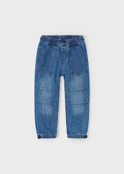Pantalon parachute à coupe large avec ourlet ajustable. Style décontracté et confortable. Taille élastiquée. Tissu denim moderne avec effet délavé et finition usée. Bas avec bande élastique pour un meilleur ajustement. Conception avec plusieurs poches.