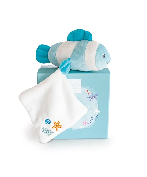 • Mini peluche poisson clown avec carré doudou ultra doux,