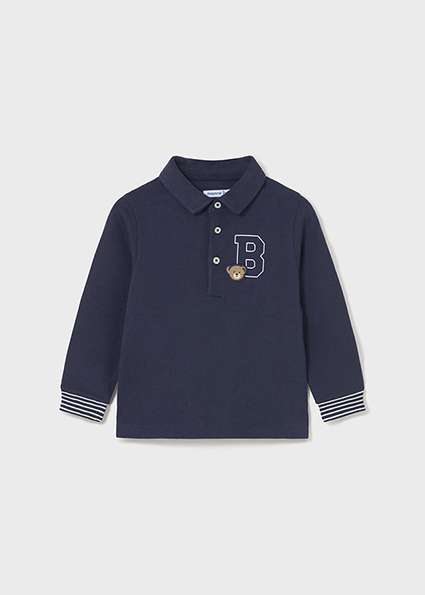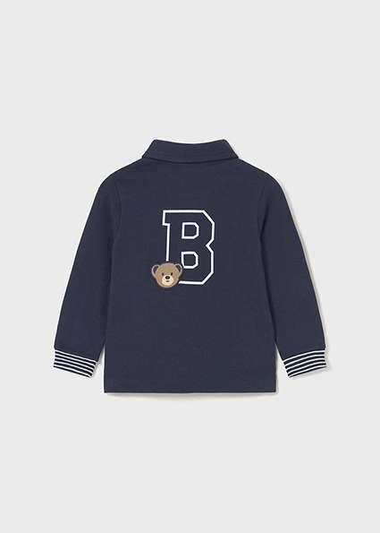 Polo à manches longues pour bébé. Col polo classique. Éléments décoratifs: appliques décoratives, broderie, dessin sur le devant et le dos du vêtement, sérigraphie (print).
