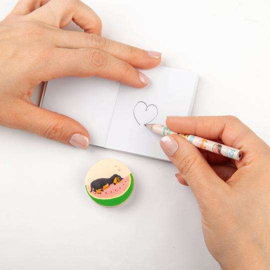 Les mini-sacs à dos TOPModel contiennent tout ce dont tu as besoin pour prendre des notes : 1 petit crayon à papier, 1 gomme ronde imprimée et 1 joli carnet. Tout est assorti au motif du sac à dos. Trois versions sont disponibles : motif chiens mignons avec un pendentif chien, motif délicat fleurs et abeilles avec un pendentif sucette, motif fleurs et chatons sur fond rose avec un pendentif chat. Les petits sacs à dos sont équipés d’un mousqueton à vis pour pouvoir les accrocher, par exemple, à un sac ou à un trousseau de clés. Matière principale : 100 % polyester