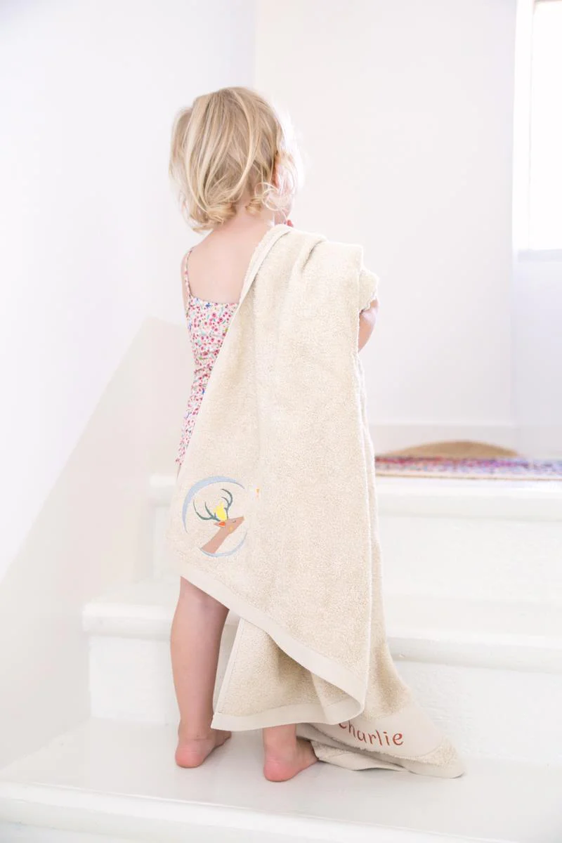 Les serviettes personnalisées pour enfant l’Oiseau Bateau se parent de jolis coloris et d’une broderie enfantine !