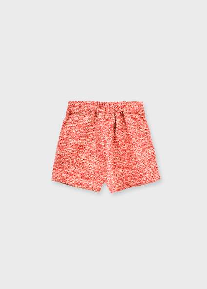 Short pour fille. Ceinture élastique réglable avec boutons à l’intérieur de la ceinture pour un meilleur ajustement. Modèle avec pinces. Éléments décoratifs: nœud.