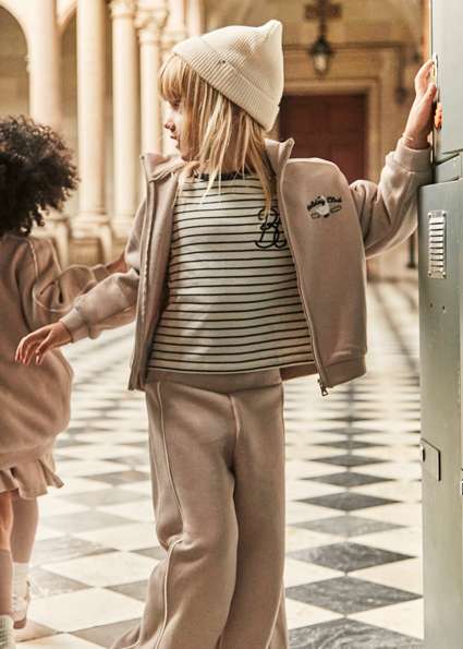 Sweat-shirt à manches longues avec fermeture éclair pour fille. Fermeture à glissière centrale avant. Poches fonctionnelles à l’avant. Éléments décoratifs: broderie