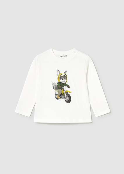 T-shirt à manches longues pour bébé. Col rond. Fermeture par pression sur l’épaule pour faciliter le passage du vêtement. Tissu 100% coton. Imprimé avec motifs monde du moteur.