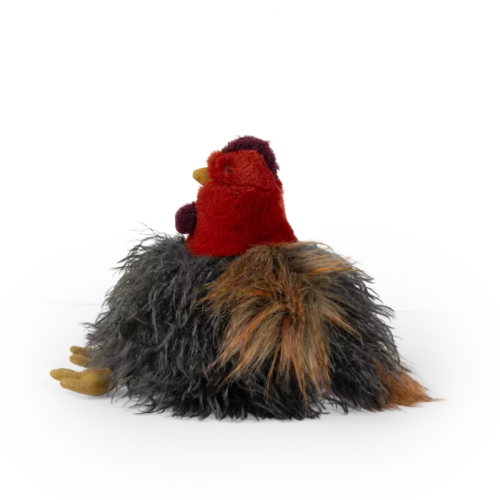 Cot cot cot ! Ça cocotte dans la basse-cour et dans les bras des enfants. Cette jolie poule aux poils longs et doux sera parfaite pour les petits et grands câlins. Poussin vendu séparément